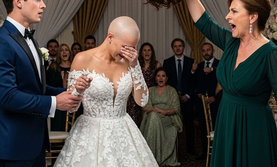You fought death and won. You walked into love, unhidden, unashamed. You taught everyone present that true beauty isn’t manufactured—it’s earned by standing tall amid fragility. Today you are not “the bride with a wig”—you are a survivor, a wife, and above all, a resonant testament to life’s unquenchable spirit.